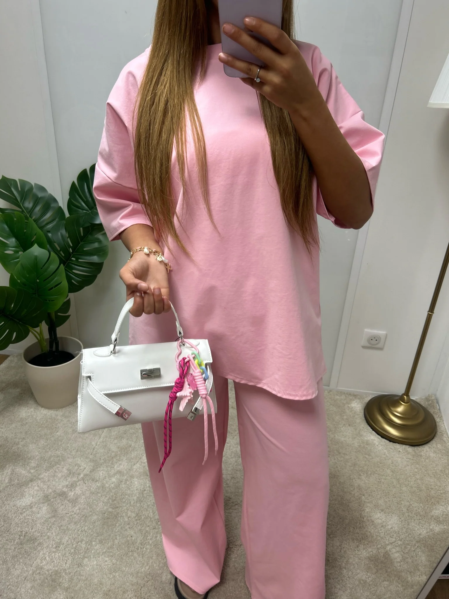 Ensemble casual à coupe ample, composé d’un t-shirt oversize et d’un pantalon large. Ultra confortable, parfait pour une journée détente ou un look minimaliste.